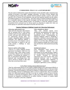 This document discuss the ongoing challenges for cybercrime enforcement and provides recommendations for Governors incorporate into their states.