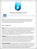 Nearly every crime has a digital component. As such, police leaders are under increased pressure to dedicate resources to combat cyber-enabled crime. The purpose of this document is to offer law enforcement executives key considerations for establishing a cybercrime unit, including: scope, recruitment/staffing, inter-agency partnerships, training, and funding.